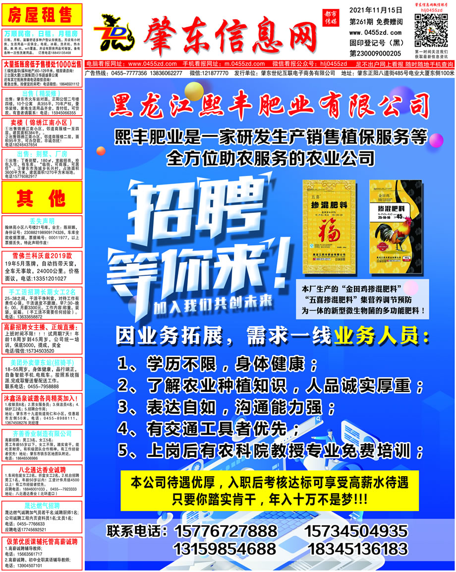 肇東信息網DM報紙2021年11月15日第261期