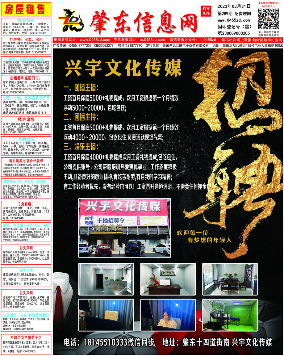 肇東信息網DM報紙2023年3月31日第289期