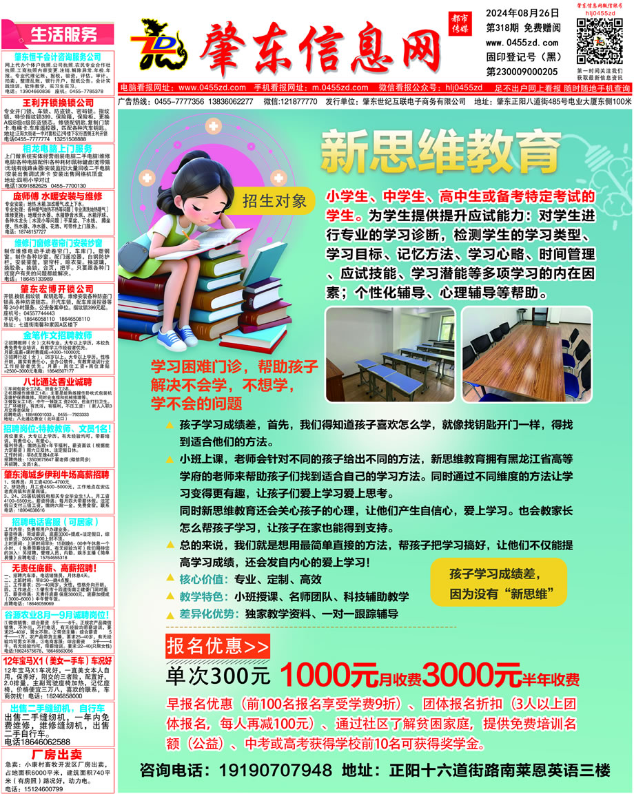 肇東信息網(wǎng)DM報(bào)紙2024年8月26日第318期