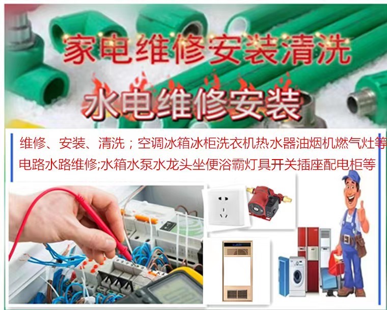 ①維修安裝清洗:空調、洗衣機、熱水器、水箱、油煙機、冰箱、冰柜、燃氣灶等。