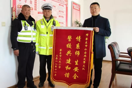 11月16日,肇東市三友小學黨支部副書記董潤生、副校長夏志軍一行三人來到市公安局交警大隊,送上一面寫有“情系師生安全、警校共建和諧”的錦旗和感謝信,盛贊交通民警...