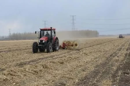 11月20日,肇東市向陽鄉田間地頭一臺后置式秸稈歸行機正在收集玉米秸稈。 秋收以來,向陽鄉拓展秸稈綜合利用技術的普及和應用,將秸稈翻埋還田、漚肥還田、打包離田,...