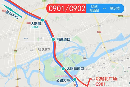 | 肇東至哈市城際公交分為兩條線路。其中,C901路始至哈站,C902路始至哈西站。主要站點途經“肇東火車站”、“三道街”站、“大耿家”站、“前進道口”站、“太陽島... |