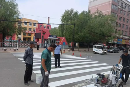 肇東市公安局交警大隊在交通流量大路口施劃隆聲帶