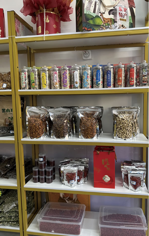 純東北椴樹雪蜜、五味子、枸杞、松茸、林下參、人參、鹿茸片、稻花香米、各種茶葉等應(yīng)有盡有。