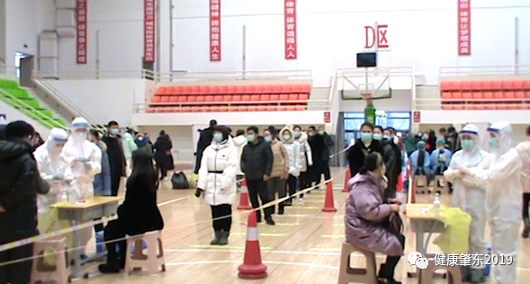 登記區(qū)運用信息化技術,使用電腦、身份證掃碼儀、掃碼槍進行身份登記和條碼識別,使登記環(huán)節(jié)的速度大大提高。采樣區(qū)按照1:10混采方式操作,每采樣一人按照七部洗手法進行消毒一次,一人采樣,一人收儲。兩組采樣隊通道使用隔離帶進行間隔,登記區(qū)與采樣區(qū)11米距離,中間用一米黃線間隔,居民在等候區(qū)綠色地標帶處等候,由民警站崗維持順序,等候區(qū)外的居民秩序由小社區(qū)干部佩戴疫情防控工作人員的紅色袖標站崗維持秩序。居民進入登記區(qū)后腳踏在黃色隔離帶上,保證間隔距離,進出兩個通道,現(xiàn)場秩序井然,當所有采集任務結(jié)束后,人民醫(yī)院和第一醫(yī)院的轉(zhuǎn)運人員分別把標本轉(zhuǎn)運箱送至等候在體育館外的本單位負壓救護車上,人員清場之后,疾控部門的消殺人員對現(xiàn)場進行了消殺處理,整個演練過程進行了2個小時。之后參加演練的單位召開會議,進行了總結(jié),對發(fā)現(xiàn)的問題提出了整改意見,為我市下步全員核酸采集起到了很好的示范作用。