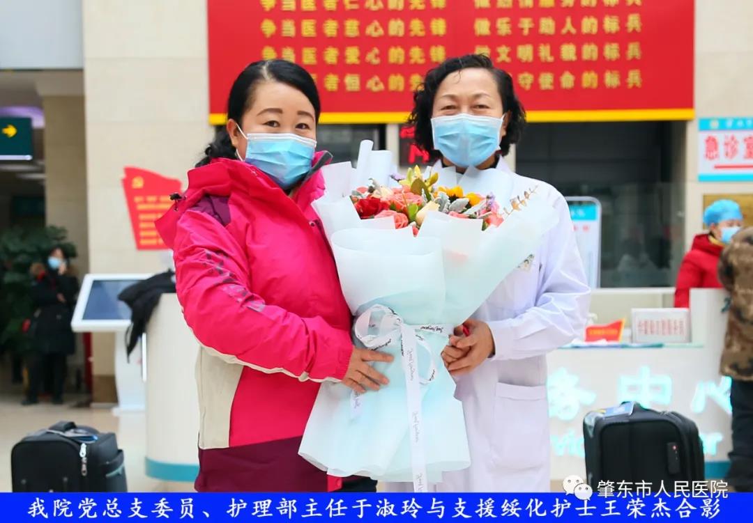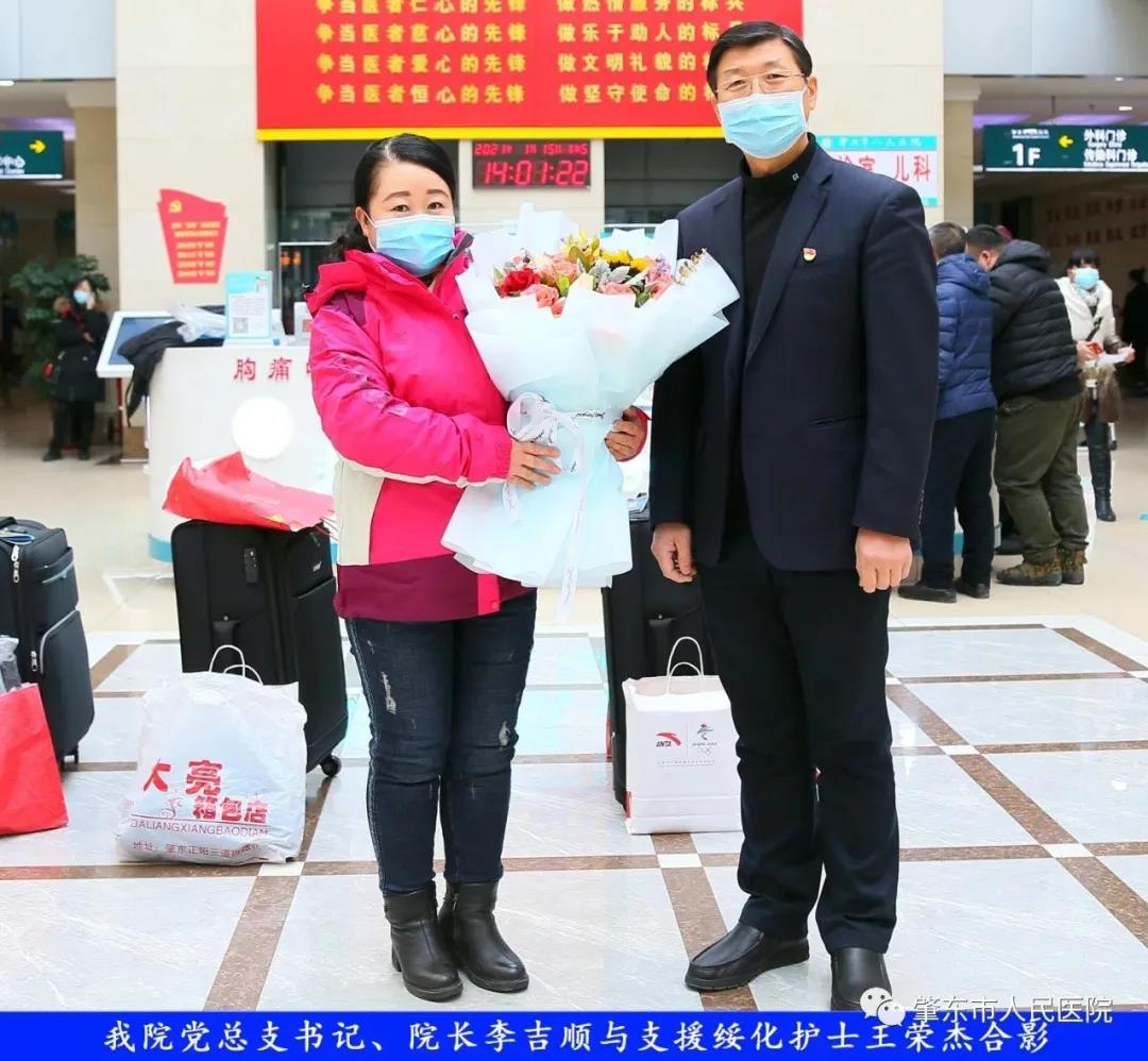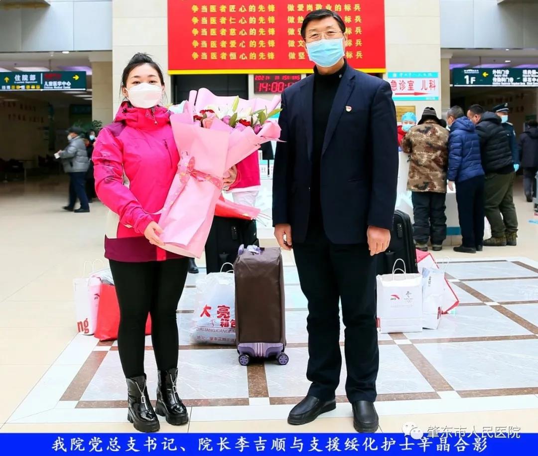 此次趕赴綏化,是我院繼趙志剛、溫明馳援湖北,欒宏偉、趙虹琪、劉文宇支援綏化后的再次出征。出發(fā)前,我院在門診大廳舉行了短暫而又莊重的歡送儀式。沒有太多的祝福和掌聲,一切都太過匆匆,大家都太過忙碌,全院醫(yī)務(wù)工作者都各自奮戰(zhàn)在如火如荼的全民抗疫工作當(dāng)中,人民醫(yī)院黨總支書記、院長李吉順,黨總支委員、護(hù)理部主任于淑玲代表全院職工向三名護(hù)理工作者送去鮮花和祝福,希望她們此次出征能夠不負(fù)使命、不負(fù)重托,充分發(fā)揚(yáng)崇高的職業(yè)精神,在工作當(dāng)中服從指揮、服從大局,忠于職守、相互配合,同時也要注意防寒保暖,做好個人防護(hù)。并祝愿她們能夠光榮出征,平安履職,勝利凱旋。