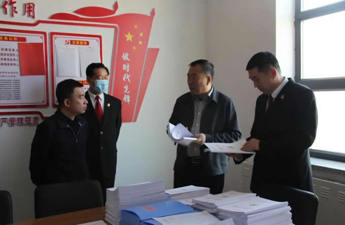 在肇東法院隊(duì)伍教育整頓領(lǐng)導(dǎo)小組辦公室檢查指導(dǎo)中, 劉昭業(yè)一行詳細(xì)聽取了黨組書記、院長王鐵軍關(guān)于隊(duì)伍教育整頓工作的匯報(bào)。仔細(xì)翻閱了我院隊(duì)伍教育整頓工作的相關(guān)材料,逐項(xiàng)查閱了隊(duì)伍教育整頓宣傳情況、學(xué)習(xí)教育日程安排、日常工作臺賬等材料,逐項(xiàng)查閱了我院隊(duì)伍教育整頓工作開展情況,并對肇東法院充分利用資源,營造向社會正面宣傳、開門搞教育整頓的濃厚氛圍給予肯定。