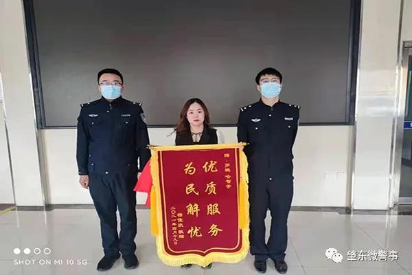 4月19日,肇東市居民宿女士來到南城派出所,將一面印有“優質服務 為民解憂”的錦旗送給派出所民警,以表達民警為其找回手機的感激之情。