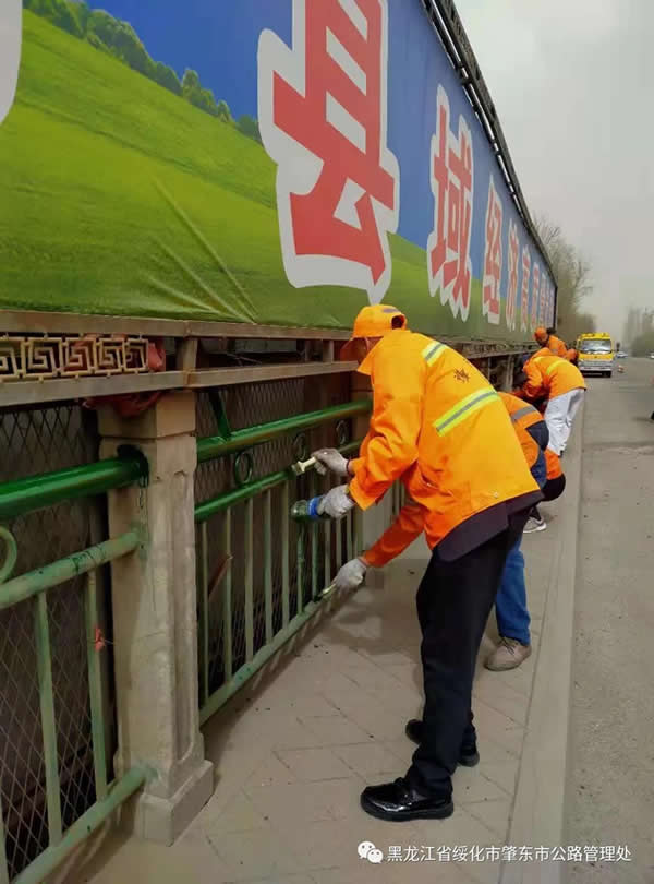 為恢復橋梁護欄良好的使用狀態,連日來,公路事業發展中心搶抓晴好天氣,組織養護工人對公路橋梁護欄進行統一油漆刷新工作。