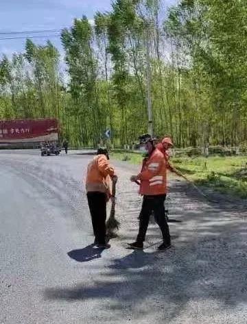為切實履行公路保護職責,養護人員第一時間趕赴現場,規范設置警示標識后,將石子堆積裝運,清掃干凈后,恢復車輛正常通行。