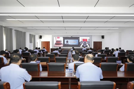 局黨委班子成員、基層科所隊長在局視頻會議室,城鄉派出所民警輔警在本單位集中收聽收看。