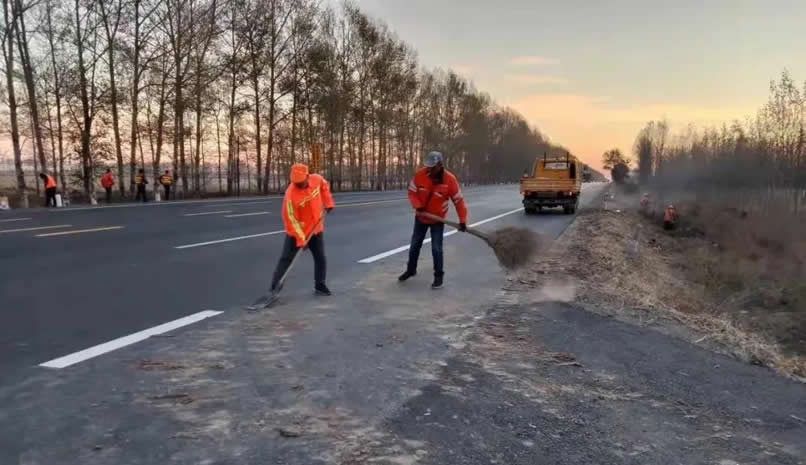 三是加強路域環(huán)境管理。組織人員對中間隔離帶雜草進(jìn)行修剪,對污損、缺失的公路標(biāo)志標(biāo)線進(jìn)行洗刷、完善,對公路及用地范圍內(nèi)的垃圾和雜物進(jìn)行清除,對非公路標(biāo)志進(jìn)行清理,維護(hù)良好的公路通行環(huán)境。