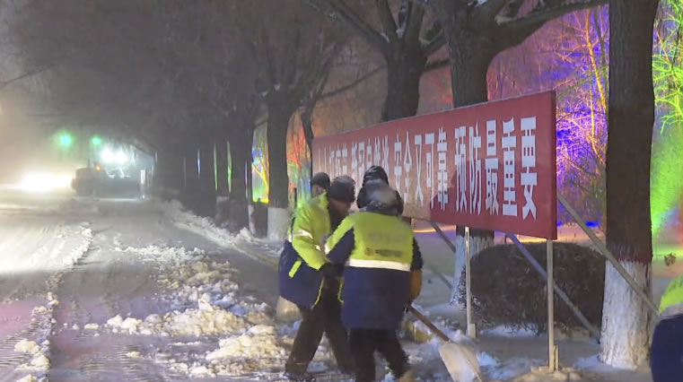 11月8日,入冬后的首場降雪,降雪量大、積雪厚,為切實保障城市正常運轉、居民出行安全,市城市管理綜合執法局第一時間組織環衛工人投入一線開展清雪作業,并組織進行了“挑燈夜戰”“連軸轉”清雪,采取人機結合、人員輪班上崗、清雪車輛不停的作業方式,增加清掃力度,最大限度清除路面積雪,全力以赴確保人民群眾出行安全。