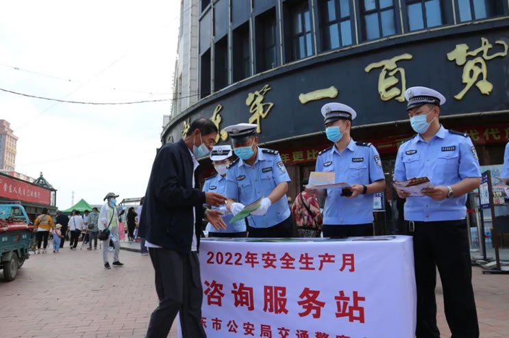 2022年6月是第21個全國“安全生產(chǎn)月”,為進(jìn)一步加大安全生產(chǎn)宣傳力度,普及安全知識,切實(shí)做好道路交通事故預(yù)防工作,有效提高廣大交通參與者的交通安全意識、法律意識、文明意識,6月16日上午9時,肇東市公安局交警大隊(duì)在一百商圈開展“" />