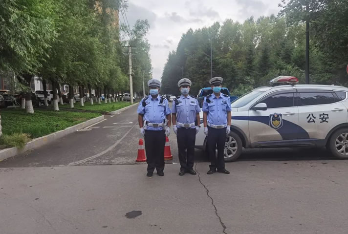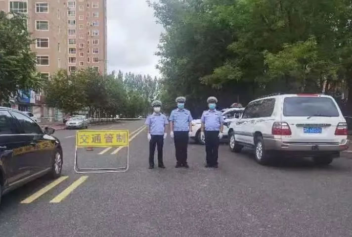 中考第一天,交警大隊執勤民警提前上崗,在考點及周邊路段考試前一個小時實行交通管制,在考場外圍擺放錐桶、禁鳴提示牌等標識,禁止機動車經過時鳴笛,引導車輛繞行,確保考場周邊環境通暢、安靜。同時,加大對考點周邊路段的巡邏管控力度,指揮疏導交通,確?忌踩樌M出考場、群眾出行暢通。對考生和考試工作人員、車輛在前往考場途中交通受阻等情況,建立“綠色通道”,讓涉考車輛優先通行。積極為需要幫助的考生提供應急救助服務,保證考生順利進入考場。