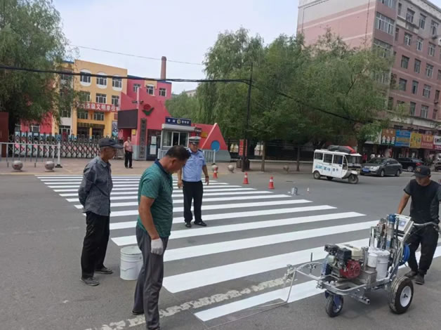 為進一步加強學校周邊道路交通秩序管理,改善學校周邊的安全出行環境,按照公安部交通管理局制定下發的《中小學學校周邊道路交通組織優化與設計導則(試行)》統一部署,結合“核心使命-2022”系列戰役和道路交通事故預防“減量控大”工作,肇東市公安局交警大隊為城區三友小學門前施劃了斑馬線,完善交通標識,優化校園周邊道路交通組織、提升校園周邊交通環境品質,確保學生上下學的交通安全。