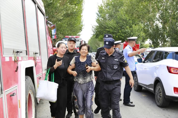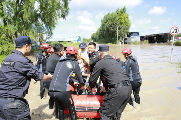 搶險救援中,巡特警大隊充分發揚骨干先鋒作用,快速反應、迅速集結,多次冒險通過涉水路段,第一時間趕赴搶險救援現場,解救被困群眾,疏導滯留車輛,轉移群眾財產。交警大隊密切關注天氣變化,加強危險地段警戒,及時設置遠端管控點,對車輛和人員進行分流處置,向社會公布道路交通狀況和行車路線,確保救援車輛順暢通行。派出所全面疏散、轉移群眾,及時排查險情,清除安全隱患,加強受災區域巡邏,切實維護人民群眾生命財產安全。