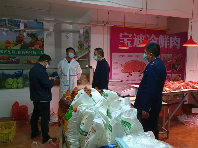 同時。 市場監督管理局快速跟進監管措施,22個分局70余監管人員,全部深入市場,對政府指定的保供商超價格執行情況、疫情防控措施落實情況、過期食品下架情況進行嚴格監督檢查。