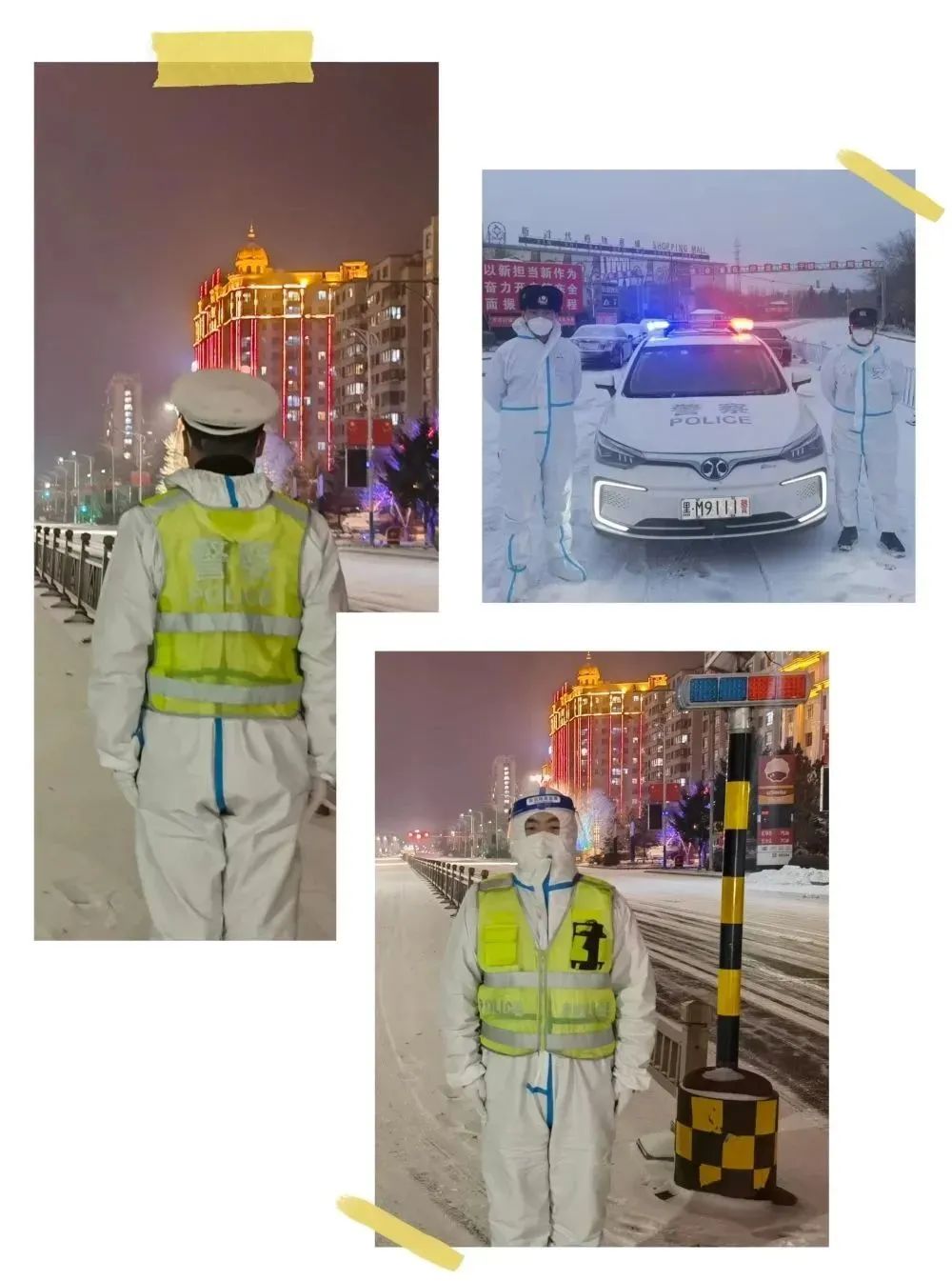 面對突如其來的惡劣天氣,肇東市公安局執勤民輔警頂風冒雪對相關車輛和人員耐心地宣傳疫情防控有關規定,在嚴厲打擊涉疫違法犯罪的同時,不斷強化文明、理性、柔性執法,讓群眾切實感受到公安機關執法的溫度,贏得了肇東百姓的支持和認可。在疫情防控卡點,執勤民輔警們依舊是一絲不茍,克服天氣寒冷等不利因素,對進入城區的車輛和司乘人員嚴格按照防控工作要求,做好人員和車輛信息登記,嚴防疫源攜入。交警大隊執勤民輔警冒雪堅守各執勤崗,嚴格執行疫情防控期間交通管控措施。各城鄉派出所執勤民輔警認真執行疫情防控任務,冒雪堅守崗位開展執勤管控工作,全力奮戰在疫情防控一線,確保疫情防控工作有序開展。自疫情臨時管控以來,肇東公安民輔警“逆行”而上,勇敢的奮戰在防控一線,彰顯了無私奉獻的精神和義無反顧的擔當,用實際行動全力守護著人民群眾的平安。