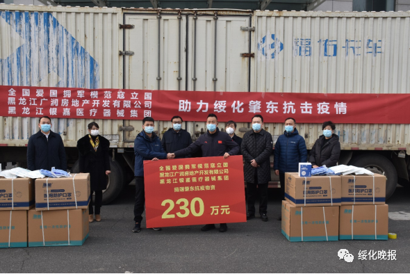 11月24日,正值肇東市抗擊新冠疫情關鍵時刻,肇東籍企業家、立國集團董事局主席寇立國,攜手黑龍江銀嘉醫療器械集團董事長朱宏偉、黑龍江廣潤房地產開發有限公司董事長馬麗,向肇東市捐贈總價值230萬元的防疫物資。