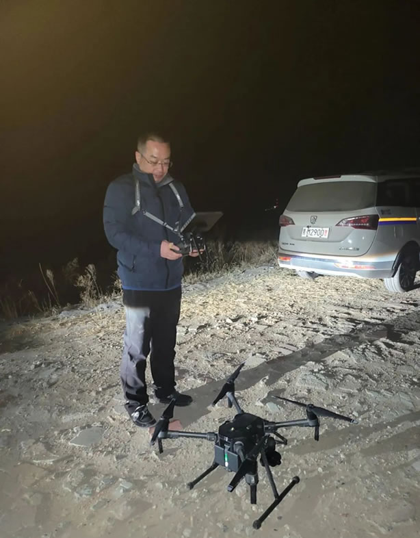 2月9日晚20時許,肇東鎮派出所接到轄區群眾徐某求助,家里的243只羊走失,耗費多時,終不見羊群蹤跡。實在沒有了辦法,想到了向派出所求助,于是就報了警,求助派出所幫忙尋找。接到求助后,所長殷國輝立即組織輔警盧宏偉、劉超趕往群眾求助地點,到達現場后,經過分析現場情況和查看地形,所長立即決定請求市局科信大隊無人機支援。