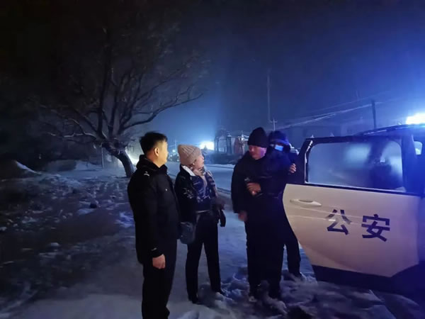 3月14日晚9時(shí)許,天空飄著鵝毛般的大雪,安民派出所接到群眾報(bào)警稱:“在安民鄉(xiāng)安民村李家圍子屯,301國(guó)道東側(cè),有一名頭戴黑色帽子,身穿黑色棉服和黑色褲子的男子,不知道什么原因躺在路邊”,接到報(bào)警后,民警楊忠孝立即帶領(lǐng)輔警張興宇趕赴報(bào)警現(xiàn)場(chǎng),經(jīng)過(guò)現(xiàn)場(chǎng)了解,發(fā)現(xiàn)該人為智障人員,無(wú)法準(zhǔn)確有效地表達(dá)個(gè)人信息,且身上也沒有任何能證明身份信息的證件,具體住址也說(shuō)不清楚。只能斷斷續(xù)續(xù)的表達(dá)自己和母親的名字,但無(wú)法提供聯(lián)系方式,經(jīng)過(guò)民警再三溝通,他說(shuō)是在廣場(chǎng)上扭秧歌,扭完后想回家,在經(jīng)過(guò)一個(gè)天橋后,迷失了方向,就走到這來(lái)了。民警楊忠孝分析,該人應(yīng)該是從市區(qū)來(lái)的,因?yàn)樗岬教鞓颍裁袼爡^(qū)最近的城市就是安達(dá)市,他應(yīng)該是從安達(dá)市方向來(lái)的,將群眾領(lǐng)到安民派出所后,輔警張興宇為他買了熱乎的食物并安撫其情緒,通過(guò)工作得知該人叫郭某東是安達(dá)市朝陽(yáng)區(qū)居民,楊忠孝立即與安達(dá)市朝陽(yáng)派出所取得聯(lián)系,安達(dá)市朝陽(yáng)派出所工作人員表示,郭某東的父母已向派出所報(bào)警,說(shuō)孩子已走失一下午了,父母很著急,我們這邊也出動(dòng)警力正在幫忙尋找,民警楊忠孝與他的父母取得聯(lián)系后,告知人已安全找到,看著天空飄下的大雪,楊忠孝決定和張興宇用警車把郭某東安全送回家里,以免發(fā)生其他意外。