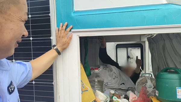 肇東鎮(zhèn)派出所接到求助后,立即驅(qū)車趕往現(xiàn)場,只見一輛白藍相間的電動車停靠在路邊,駕駛員因高位截肢行動不便只能留在駕駛室內(nèi)。劉某是湖北人,早年的車禍導(dǎo)致高位截肢,他雖然身有殘疾,但不妨礙想走遍祖國大好河山的夢,原本想著七一期間可以走到大慶,沒想到半途中車輛發(fā)生故障無法移動,考慮到自己行動不便,情急之下向民警求助。