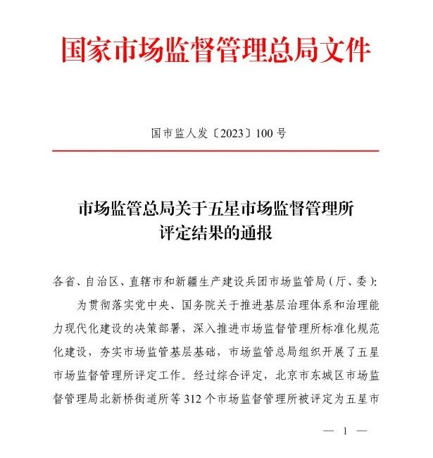 近日,肇東市市場監督管理局五站分局被國家市場監督管理總局命名為國家級“五星市場監督管理所”,這是全國首批命名的312個五星市場監管所之一,更是黑龍江省9個五星所之一,綏化市唯一一個五星所。
