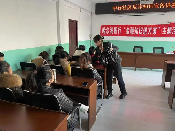 哈爾濱銀行綏化肇東支行踐行社會責任,助力全民反詐。哈爾濱銀行肇東支行今日走進“中行社區(qū)”開展“金融知識進萬家”主題宣傳活動。向社區(qū)居民宣講防范電信詐騙方法及技巧,宣傳斷卡行動的生活意義,并結(jié)合真實案例,生動形象的為社區(qū)居民描述電詐危" />