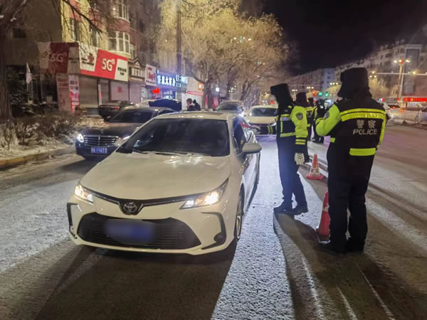 肇東市公安局交警大隊開展酒駕夜查行動