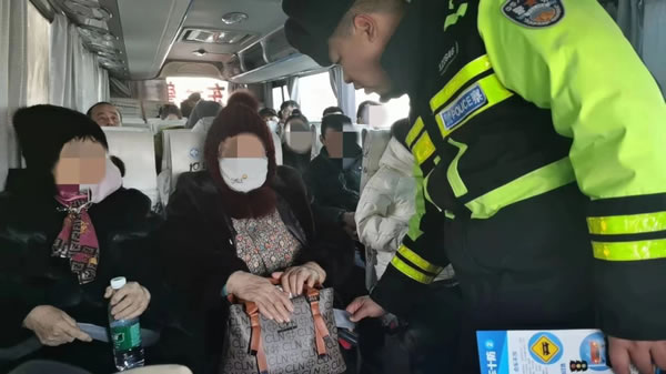 民警在檢查車輛的同時(shí),不忘交通安全宣傳,為司乘人員發(fā)放與“春雷行動(dòng)”相關(guān)的宣傳資料,提醒旅客要時(shí)刻牢記系好安全帶,要到正規(guī)客運(yùn)站乘坐具有合法運(yùn)營(yíng)資質(zhì)的車輛,切勿在站外、公路旁攔截車輛上車,拒絕乘坐非法營(yíng)運(yùn)和超員車輛,營(yíng)造了濃厚的春運(yùn)安全宣傳氛圍。