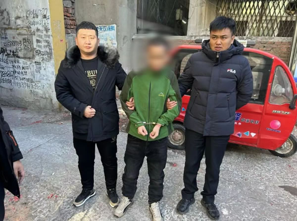 2月11日(大年初二)13時許,肇東市公安局110指揮中心接到一名女同志報警稱,她在弟弟家樓道內被一名男子拿刀搶走手機一部。接到報警后,肇東市公安局刑偵大隊立即成立專案組,迅速開展案件偵辦工作。專案組民警詳細詢問了報警人,得知嫌疑人身高約1.60米,頭戴黑色耳包和棕色手套,作案時一手勒住受害人的脖子,一手拿著尖刀頂在受害人后腰上,搶走手機一部。雖然女青年身上沒有攜帶財物,但是大年初二,發生這種持刀搶劫的案子,性質惡劣,必須盡快破案,及時消除不良社會影響。專案組民警在相關警種配合下調取案發現場周邊的監控錄像,迅速開展工作,并通過先期掌握的犯罪嫌疑人體貌特征信息,對案發地及周邊網吧、臺球廳、旅館等易藏匿地點,進行地毯式排查,梳理犯罪嫌疑人作案前后的行蹤軌跡。