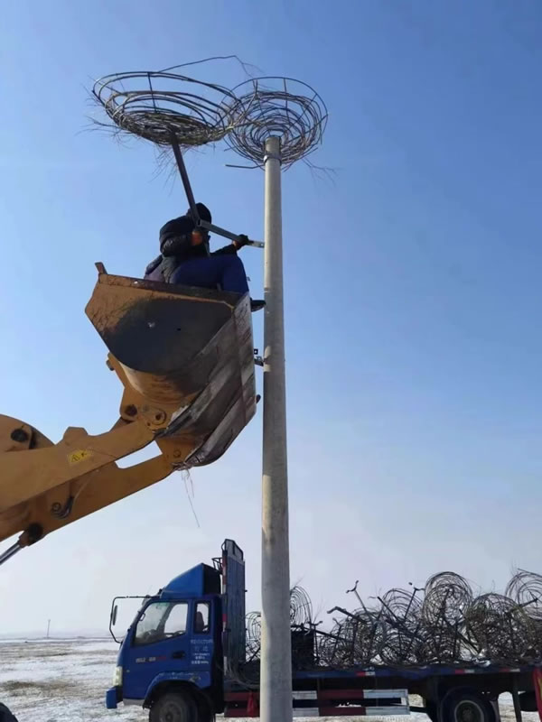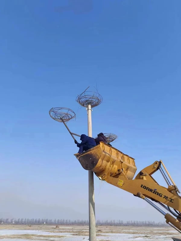 肇東市千鶴島風景區東方白鸛人工鳥巢陸續架設搭建完成!