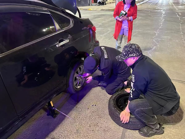 巡邏民警在接到女士的求助后迅速開展工作,他們首先安撫了群眾的情緒,并迅速評估了現場情況。在確認安全無誤后,民警展開了更換備胎的工作。在整個過程中,民警還向群眾傳授了一些基本的車輛維護知識,比如如何檢查輪胎氣壓、如何識別備胎是否適合當前車輛以及如何正確使用千斤頂。在備胎安裝完畢后,民警還仔細檢查了新車胎的氣壓,確保其符合標準。他們還提醒群眾,由于備胎通常是應急使用,其性能可能不如原廠輪胎,因此建議盡快到專業的汽車修理店進行檢查和更換。