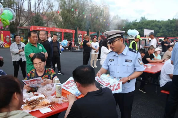 在活動現場,民輔警通過現場宣講、搭建宣傳咨詢臺、粘貼宣傳海報、發放宣傳資料等方式,面對面與群眾溝通,講解交通法律法規、解答群眾提出的疑問。宣傳“一盔一帶 安全常在”及“喝酒不開車,開車不喝酒”等交通安全常識,提示車輛超員超載、疲勞駕駛、酒駕醉駕等交通違法行為的嚴重危害及后果,提醒廣大群眾在騎乘電動車時要正確佩戴合格的安全頭盔,杜絕闖紅燈、逆向行駛、違法載人等各類交通違法行為。教育引導廣大群眾要自覺遵守交通法律法規,摒棄交通陋習,做到守法規知禮讓,爭做文明交通的帶頭人。