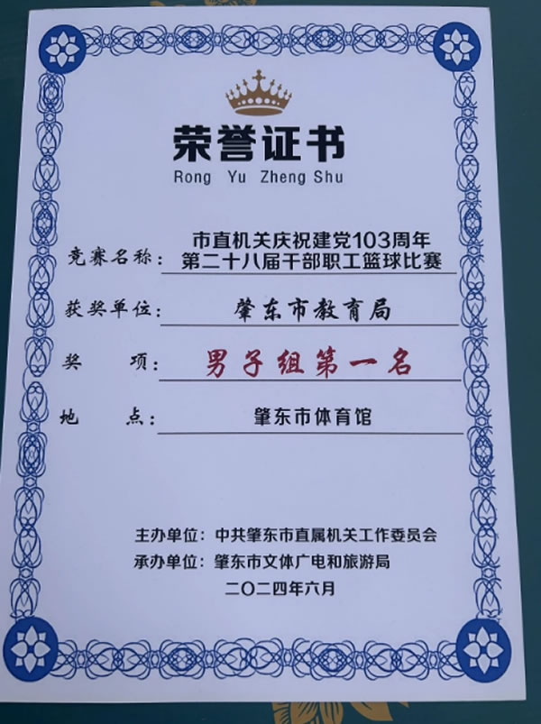 在6月15日-22日我市市直機(jī)關(guān)工委舉辦的“慶祝中國(guó)共產(chǎn)黨成立103周年第二十八屆干部職工籃球比賽”中,教育局代表隊(duì)一路過(guò)關(guān)斬將,獲得市直男子組第一名的佳績(jī)。