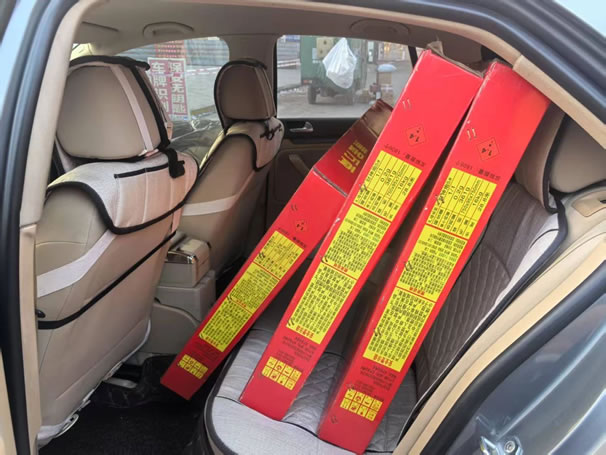 2025年1月20日13時許,民警在肇東市區發現違法行為人張某某意圖駕駛嫌疑車輛將煙花爆竹“送貨上門”,遂立即對其進行抓捕,當場查獲20余箱煙花爆竹。經查,張某某為謀取個人利益,在明知無證銷售煙花爆竹屬于違法犯罪行為的情況下,仍對外銷售煙花爆竹。據張某某交代,雖明知沒有煙花爆竹經營許可證、道路運輸許可證,但還是心存僥幸,通過微信朋友圈兜售煙花爆竹,在確認銷售訂單后自行駕車到六道街購買后在市區內銷售,沒想到剛準備“送貨”便被民警查獲。