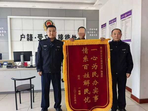 4月19日,王先生為東城派出所的民警送來了錦旗,感謝東城派出所民警的付出。