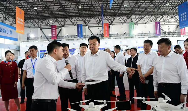 張寶偉、李元學等在肇東北大荒通用機場參觀無人機及航材。