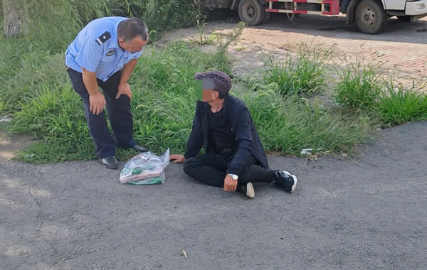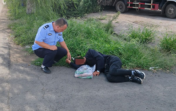 向陽所民警像往常一樣在轄區開展巡邏工作,行至某路段時,發現一人橫臥在馬路旁的草叢邊,身旁還放著塑料袋。考慮到馬路邊車來車往,情況復雜,為防止意外發生,民警迅速上前查看。起初,該群眾處于昏睡狀態,民警小心翼翼將其喚醒。經詢問得知,此人是到向陽鄉親戚家喝酒,喝完酒后在路邊等車,因不勝酒力,便在路邊睡著 。