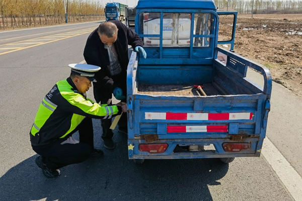 活動同時,民警還積極推進“亮尾工程”,他們深入田間地頭和農戶家中,本著“一臺不漏、一臺不少”的原則,為沒有反光標識的農用車粘貼了反光貼,對已陳舊、脫落的進行查缺補漏,掃除盲區和死角,消除事故隱患,為秋收保駕護航。