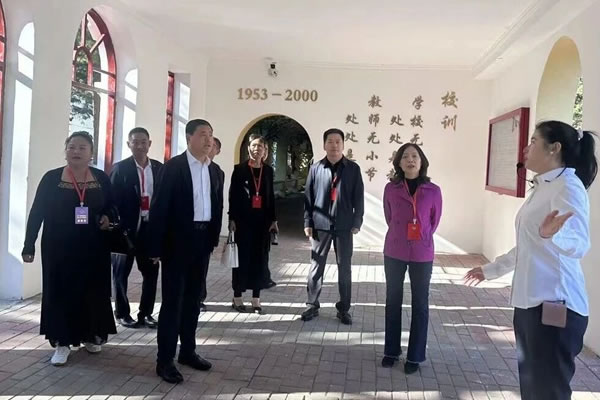 視察組一行先后實地參觀了肇東師范學校校園、體育館、藝體樓、校史長廊,聽取情況講解和介紹,實地感受近年來在新的學校領導班子帶領下,學校對硬件設施進行全面升級改造,功能布局更為合理,設施配備更加完備,校園環境煥然一新,辦學條件得到顯著改善,并堅持黨建引領,實施“一主兩輔”的發展策略,讓這所擁有七十多年歷史的學校煥發出嶄新的生機與活力。
