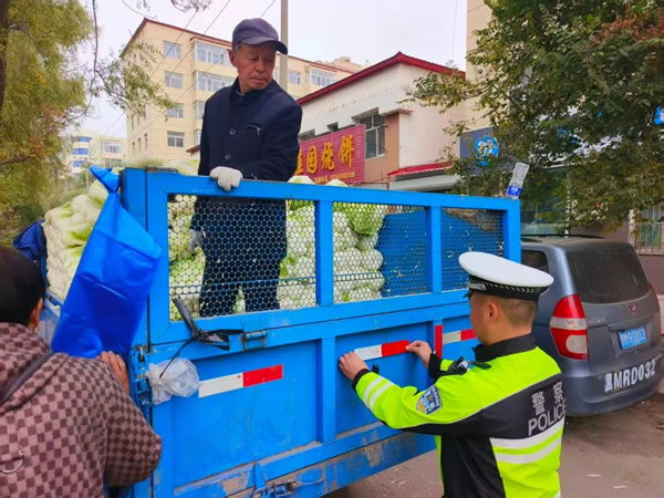 針對(duì)秋菜運(yùn)輸車(chē)輛多為農(nóng)用車(chē)型、駕駛員交通安全意識(shí)相對(duì)薄弱的特點(diǎn),交管民警們還化身“流動(dòng)宣傳員”。在臨時(shí)停靠點(diǎn),他們會(huì)主動(dòng)遞上交通安全手冊(cè),用通俗易懂的語(yǔ)言講解“不超載、不搶道、不疲勞駕駛”等注意事項(xiàng);看到有的農(nóng)用車(chē)輛反光標(biāo)識(shí)陳舊或破損,便及時(shí)給予補(bǔ)充粘貼,并不厭其煩地講解反光貼的重要作用。一句句樸實(shí)的叮囑,讓農(nóng)戶(hù)們感受到實(shí)實(shí)在在的關(guān)懷。