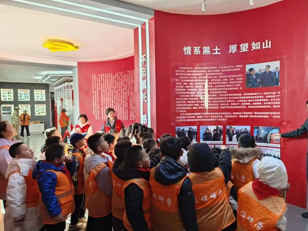 活動當天,孩子們先走進黎明鎮長富村紅色教育展館。沿著總書記視察路線,在講解員帶領下參觀 “長富精神” 等特色板塊,通過老照片、實物與場景復原,聆聽原黨支部書記 37 年深耕現代農業的奮斗故事,在紅色文化中傳承艱苦奮斗精神。