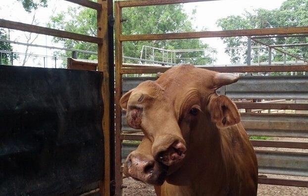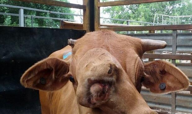 【雙面牛驚現澳大利亞】澳大利亞媒體11日報道,澳昆士蘭北部地區一家出售了一條“雙臉牛”。根據社交媒體上的Po圖,這頭牛的第二張臉上有一只眼睛,倆鼻孔和一只牙齒。