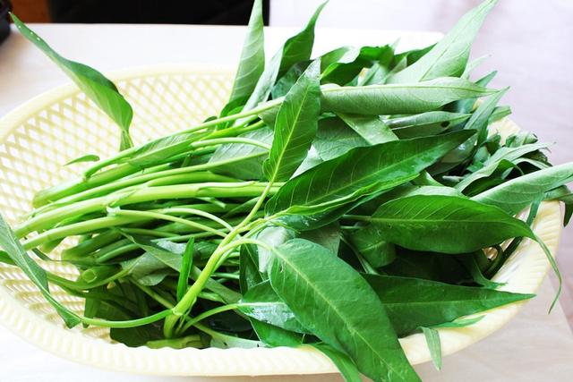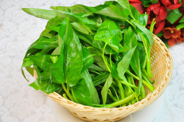 空心菜又名蕹菜、無心菜、竹葉菜, 春、夏季采取其莖葉鮮用, 具有很高的食用價值及藥用價值?招牟嗽谖覈兄凭玫脑耘鄽v史, 早在殷商時代, 人們就將這種野生植物栽培為蔬菜了, 《本草綱目拾遺》記載:“解毒熟食之, 亦可先搗服” , 說明人們在很早就已經知道其藥用價值, 時至今日, 空心菜已是老百姓日常生活中最喜愛吃的蔬菜之一。這個季節又到了吃空心菜的最好時候了,葉子鮮嫩爽口,這時候不吃真是有點兒可惜!