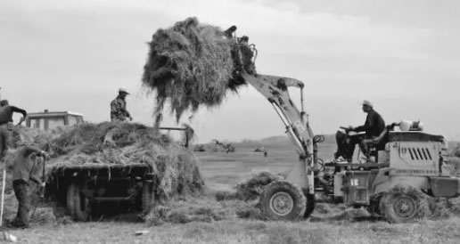 圖為肇東鎮養殖大戶李立民與工人們一起收獲干草飼料。霍永祥記者蘇強攝