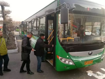 剛剛走出火車站的乘客坐上方便快捷的公交車
