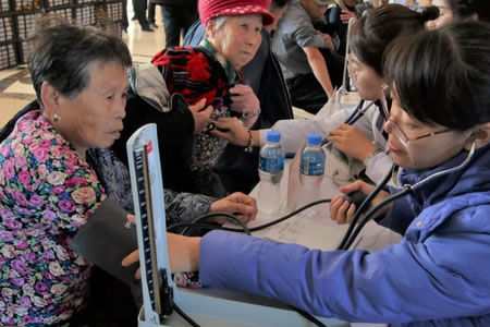 活動(dòng)中,市第一醫(yī)院領(lǐng)導(dǎo)及醫(yī)護(hù)人員還帶著三萬元的慰問品,看望慰問這里的老人,并為老人們測(cè)量血壓、檢查身體,與老人們共度佳節(jié)。